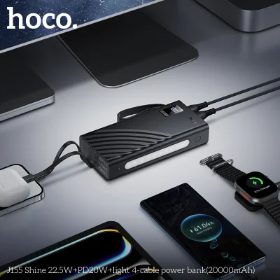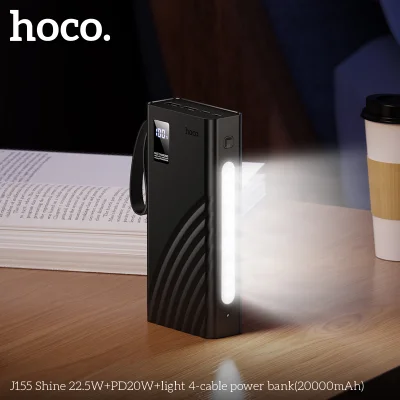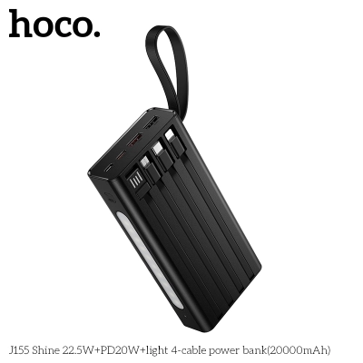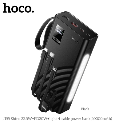 The best price of hoco J155 Shine 22.5W+PD20W+light 4-cable power bank (20000mAh) in Bangladesh is ৳1,950.00. You can buy the hoco J155 Shine 22.5W+PD20W+light 4-cable power bank (20000mAh) at best price from our website.