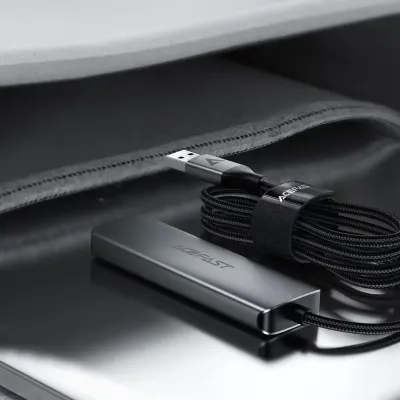 The hub features a premium aluminum alloy housing that ensures efficient heat dissipation during extended use. Its 1-meter nylon-braided cable provides flexibility, durability, and resistance to bending, making it ideal for both desk setups and travel.